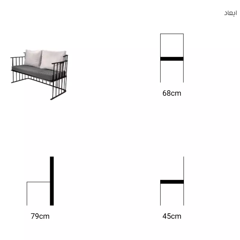 ابعاد:(طول*عرض*ارتفاع) :صندلی: طول 68* عرض 45* ارتفاع 79 سانتی متر, مبل: طول 160* عرض 65* ارتفاع 95 سانتی متر