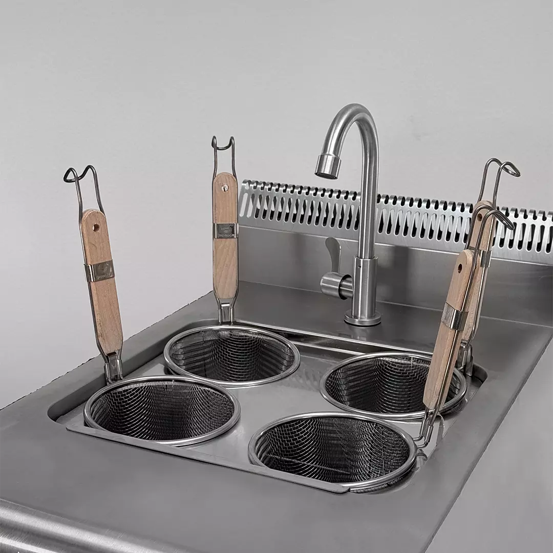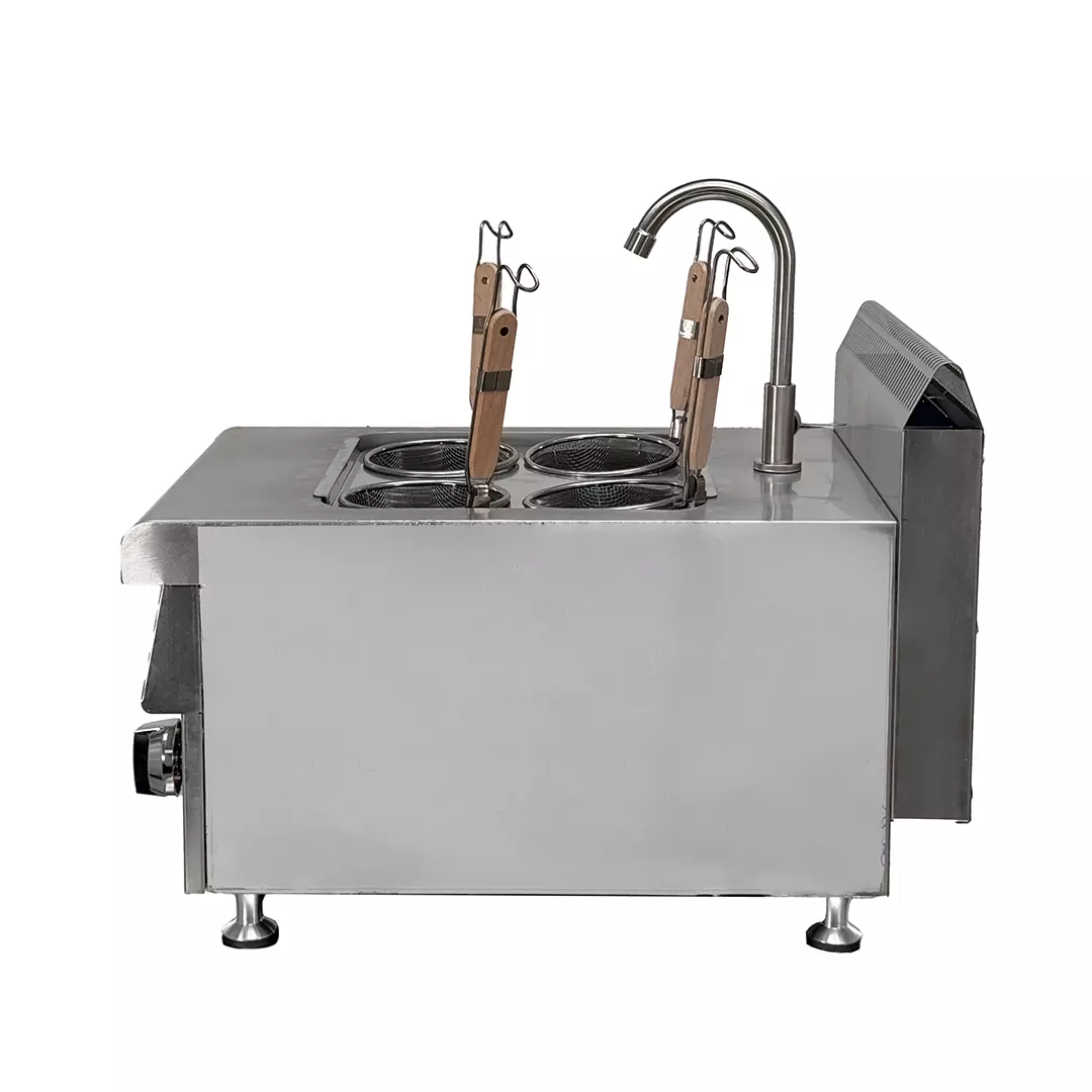 دستگاه پاستا میکررومیزی گازی 4 سبد : این دستگاه پاستا میکر رومیزی گازی 4 سبده مناسب برای تهیه انواع پاستا در تمامی رستوران های ایتالیایی و آشپزخانه هایی که به طبخ پاستا می پردازند. دستگاه پاستا میکر صنعتی رومیزی برای طبخ انواع مختلف پاستا در رستوران های که مشغول به پخت پاستا هستند توسط این دستگاه پاستا میکر رومیزی گازی 4 سبده برند ABA مدل SOT-4 انجام می شود. ساخت این دستگاه پاستا میکر گازی 4 سبده رومیزی آبا از استنلس استیل بهترین متریال روز دنیا در کشور چین توسط مهندسان چینی طراحی و تولید شده است. شما می توانید بهترین و مناسب ترین قیمت دستگاه پاستا میکر گازی صنعتی 4 سبده آبا را در سایت تجهیزشو خرید و ثبت سفارش نمایید.