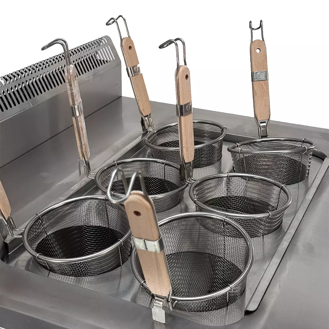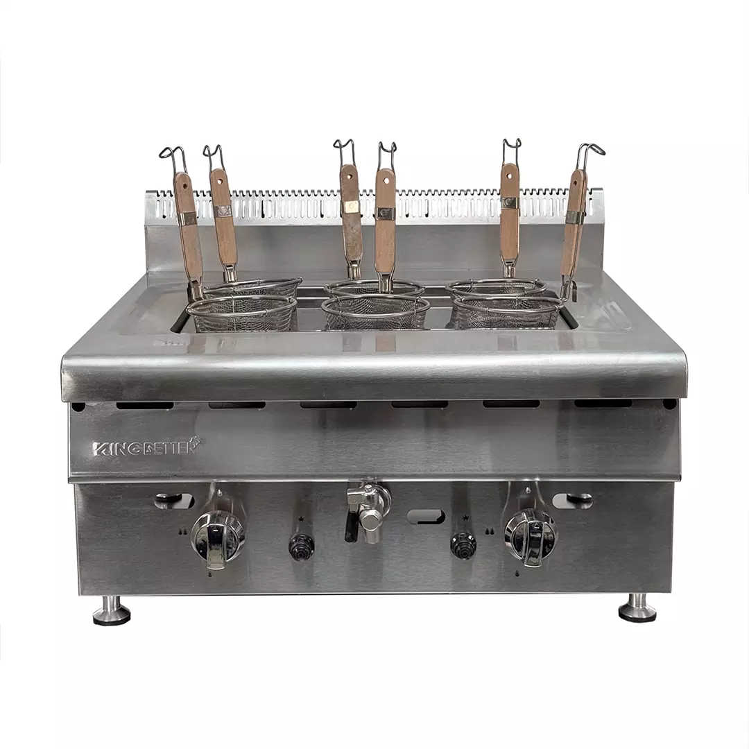 دستگاه پاستا ساز رومیزی گازی 6 سبد : این دستگاه پاستا ساز رومیزی گازی 6 سبده مناسب برای تهیه انواع پاستا در تمامی رستوران های ایتالیایی و آشپزخانه هایی که به طبخ پاستا می پردازند. دستگاه پاستا میکر صنعتی رومیزی برای طبخ انواع مختلف پاستا در رستوران های که مشغول به پخت پاستا هستند توسط این دستگاه پاستا ساز رومیزی گازی 6 سبده برند ABA مدل SOT-6 انجام می شود. ساخت این دستگاه پاستا ساز گازی 6 سبده رومیزی آبا از استنلس استیل بهترین متریال روز دنیا در کشور چین توسط مهندسان چینی طراحی و تولید شده است. شما می توانید بهترین و مناسب ترین قیمت دستگاه پاستا ساز گازی صنعتی 6 سبده آبا را در سایت تجهیزشو خرید و ثبت سفارش نمایید.