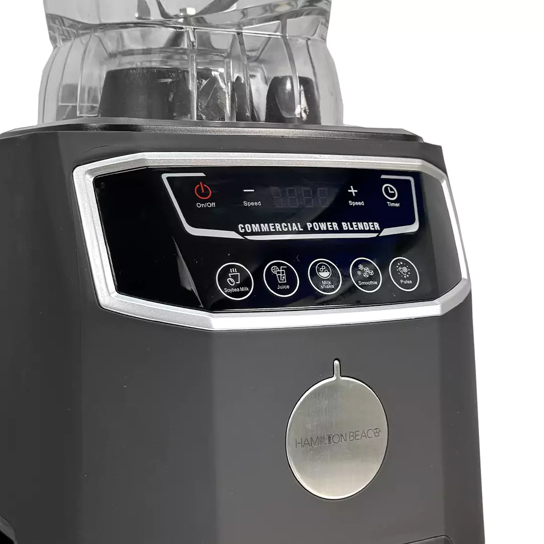 • دستگاه بلندر صنعتی دارای یک عدد کلید جهت روشن خاموش کردن بلندر به صورت دستی و یک عدد کلید جهت تنظیم میزان سرعت بلند کردن از 1 تا 15 و کلید سمت راست جهت قدرتمند تر کردن دور موتور می باشد یعنی شما میتوانید برای مخلوط کردن موادی که احتمال میدهید دستگاه نتواند با میزان تعیین شده خرد و میکس کند این دکمه به شما این امکان را میدهد که دور موتور را به صورت دوبل تنظیم نمایید.تمامی این ها به صورت دیجیتال و لمسی می باشد.